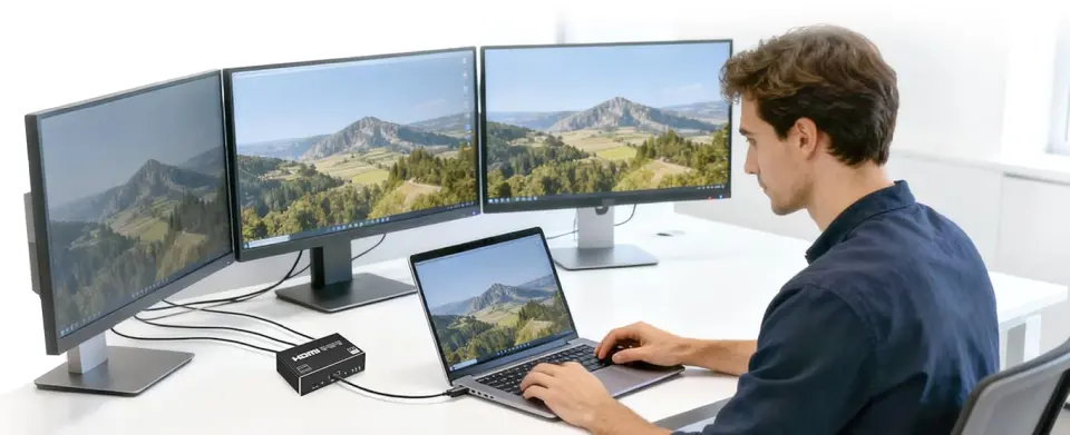 Uwaga: splitter służy do duplikowania obrazu na wszystkich wyjściach, przy jego pomocy nie można uzyskać tzw. rozszerzonego pulpitu.