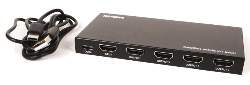 Rozdzielacz (splitter) 1x4 umożliwia podłączenie czterech odbiorników telewizynych, monitorów bądź projektorów do jednego źródła sygnału HDMI (np. dekoder telewizji cyfrowej, odtwarzacz DVD i Blu-ray, PlayStation 3/4, Xbox, komputer).