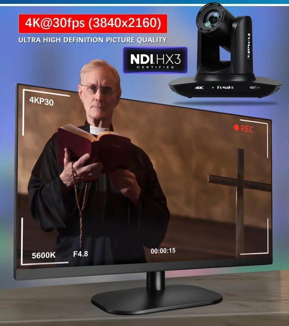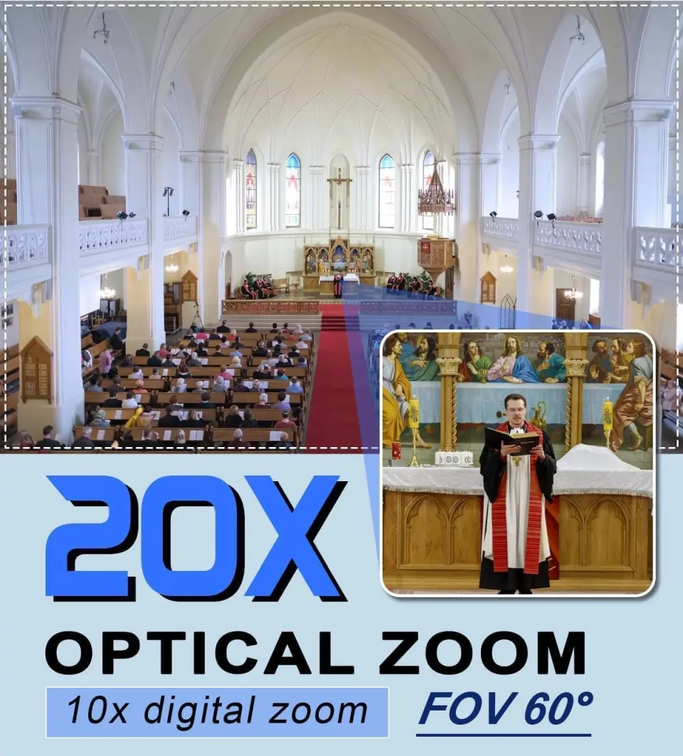 Kamera PTZ 4K to idealny wybór do transmisji i realizacji na żywo z kościołów, sal koncertowych, konferencji, imprez, studia nagrań, klubów, teatrów itp. Kamera świetnie sprawdzi się zarówno w samodzielnej pracy jak i do bardziej zaawansowanych realizacji w systemach z kilkoma kamerami, mikserem, sterownikiem PTZ itp. W pierwszym przypadku wystarczy podłączyć kamerę do switcha lub routera i po prostej konfiguracji możemy rozpoczynać streaming na żywo.