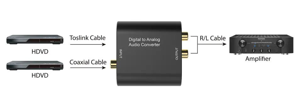 Konwerter cyfrowo-analogowy audio jest potrzebny gdy chcemy podłączyć źródło dźwięku mające jedynie wyjście cyfrowe Toslink lub Coaxial (np. telewizor, dekoder, odtwarzacz) do wzmacniacza, głośników lub słuchawek wyposażonych w analogowe wejście dźwięku RCA. Konwerter jest niewielki, łatwy w instalacji i oferuje bardzo dobrą jakość dźwięku. Nadaje się do zastosowań domowych i profesjonalnych.