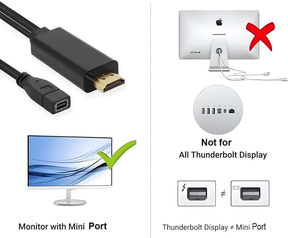 Uwaga: mino identycznego wyglądu wtyków złącze Mini DisplayPort nie jest w 100% tożsame ze złączem Thunderbolt. Konwerter nie będzie działać z niektórymi monitorami Apple wyposażonymi w wejście Thunderbolt, przeznaczony jest do monitorów z wejściem Mini DisplayPort.