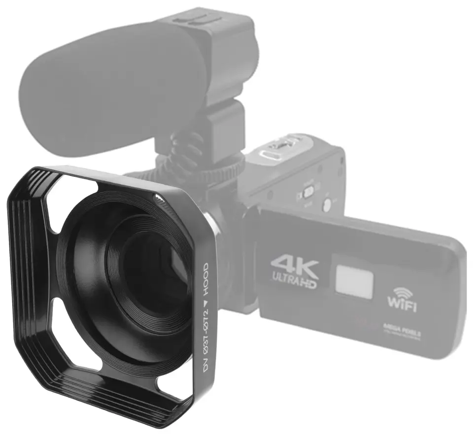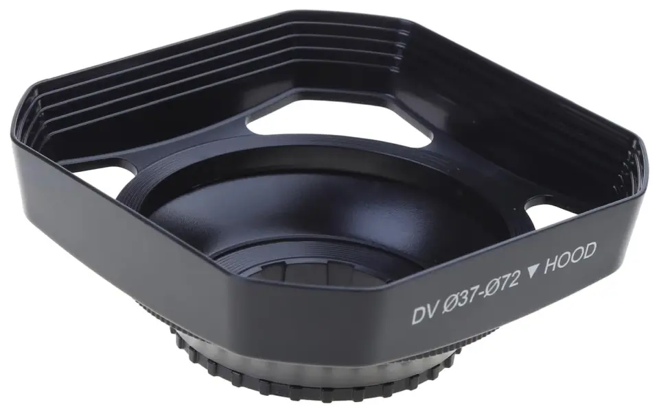 Osłona przeciwsłoneczna posiada gwint mocujący 37mm oraz odkręcany adapter z gwintem 72mm. Pasuje do kamer