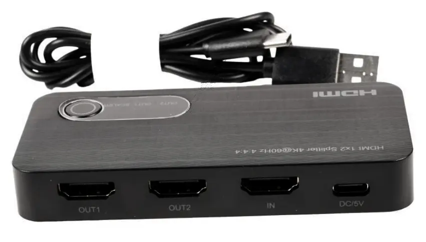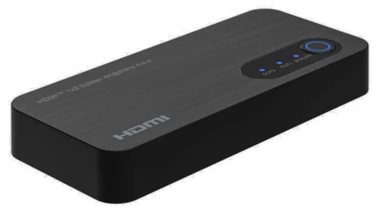 Aktywny rozdzielacz (rozgałęźnik, splitter) HDMI umożliwia podzielenie sygnału HDMI z jednego źródła (dekoder, komputer, konsola, odtwarzacz DVD/Blu-ray itp.) na dwa odbiorniki (telewizor, monitor, projektor, wzmacniacz, głośnik, soundbar itp.) Ten sam sygnał jest obecny równocześnie na obu wyjściach, bez żadnych strat jakości.